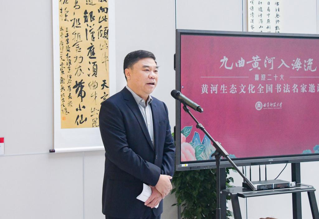 “黄河国家战略与传统文化‘两创’两大时代课题,为本次展览赋予了鲜明主题和丰厚内涵。”完美网页版党委书记邢光在开幕式上致辞,对莅临展览的各位领导和嘉宾表示热烈欢迎,向长期以来关心支持曲阜师大建设发展的各界朋友表示衷心感谢。邢光指出,曲阜师大认真践行习近平总书记关于中华优秀传统文化“两创”的重要论述和重要指示精神,深入贯彻习近平总书记在深入推动黄河流域生态保护和高质量发展座谈会上的重要讲话精神,在担当“为国弘文”使命、推动黄河生态研究等方面取得了丰硕成果。本次展览是曲阜师大喜迎党的二十大系列活动的重要内容,表达了全校师生与全国各地书法艺术家喜迎盛会的激情与豪迈。