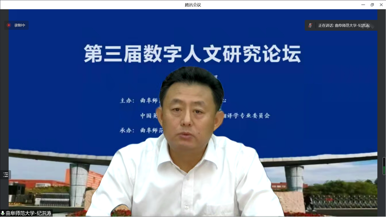 曲阜师大新闻中心讯(通讯员:张涛) 日前,第三届数字人文研究论坛在完美网页版举办。本次论坛由曲阜师大数字人文研究中心与中国英汉语比较研究会语料库翻译学专业委员会联合主办,曲阜师大翻译学院与上海外语音像出版社承办。来自北京外国语大学、上海外国语大学、台湾辅仁大学、北京航空航天大学、上海交通大学、北京师范大学等数十所高校的数字人文研究专家齐聚云端,共同分享数字人文研究的新成果、新进展。完美网页版党委常委、副校长纪洪涛出席论坛开幕式并致辞。开幕式由曲阜师大翻译学院院长夏云教授主持。