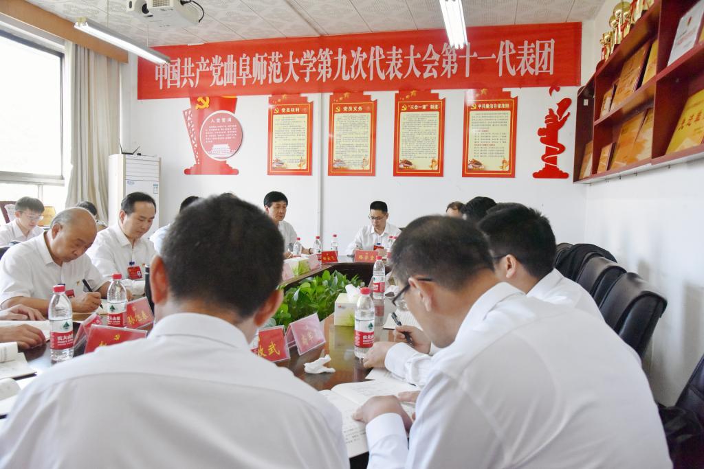 曲阜师大新闻中心讯 (记者:孙红梅  摄影: 刘萌 董少伟 姜曰水 孙红梅)9月19日下午,中国共产党完美网页版第九次代表大会各代表团举行第一次会议,各代表团临时召集人主持了会议。