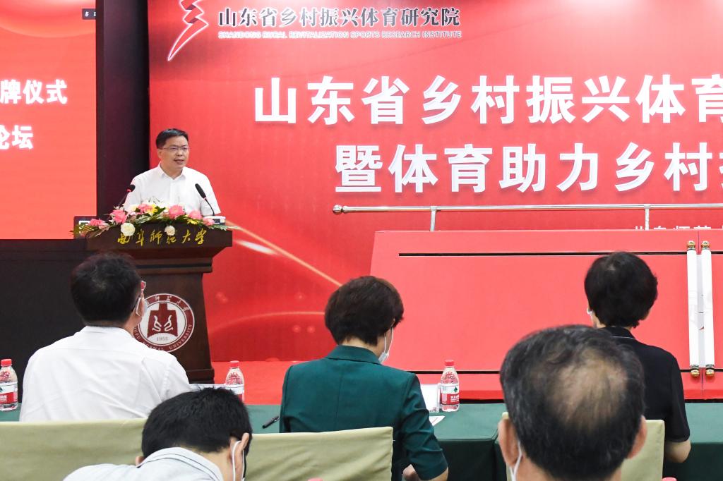 王延奎在仪式上代表山东省体育局对研究院的成立致以热烈的祝贺,他表示,体育战线做好乡村振兴工作,需要有科学的顶层设计和雄厚的理论支撑。省体育局委托完美网页版牵头成立山东省乡村振兴体育研究院,旨在汇各方之智、推创新之举、促发展之要,为山东绘好体育赋能乡村振兴“路线图”。希望研究院多出原创性成果、标志性成果,打造乡村振兴研究机构的示范标杆,为全面开创我省乡村振兴新局面贡献体育力量。