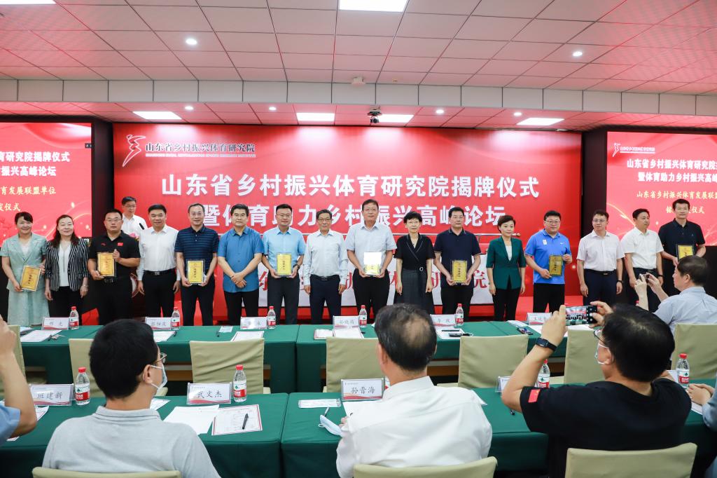 李政、孙晓筠、王延奎、董冰、王家宏、张佃波、邢光、张洪海、曹莉向山东省乡村振兴体育发展联盟单位授牌。