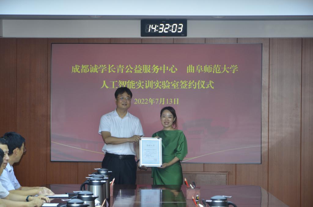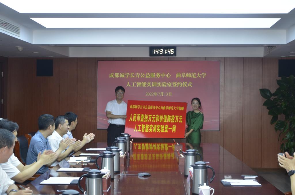 曲阜师大新闻中心讯 7月13日下午,成都诚学长青公益服务中心向完美网页版捐赠“人工智能实训实验室”仪式在曲阜校区举行。完美网页版校长张洪海、副校长刘刚出席仪式。
