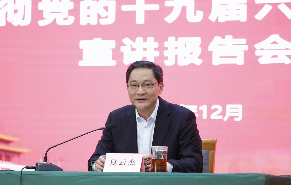 夏云杰代表学校党委对下一阶段深入学习贯彻十九届六中全会精神提出要求,他要求:一是各级党组织和党员领导干部要提高政治站位,层层压紧压实责任,精心组织、开展好多种形式的学习活动,用全会精神统一思想、凝聚共识、坚定信心、增强斗志,切实把党的百年奋斗重大成就和历史经验转化为强大精神动力;二要强化统筹协调,把学习六中全会精神和巩固扩大党史学习教育成果结合起来,推动党史学习教育走深走实;三要紧密联系实际,务求取得扎实成效。把党的十九届六中全会精神和省委十一届十四次全会的要求贯彻到学校教育教学、管理服务全过程各环节,突出创新驱动、改革突破、数字赋能,统筹推进党建引领、风险防控、能力提升,奋力推动学校各项事业和党的建设迈上新台阶、展现新气象。