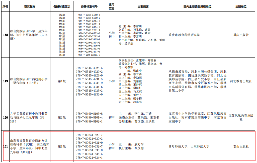 曲阜师大新闻中心讯(通讯员:宋阳) 日前,国家教材委员会发布《关于首届全国教材建设奖奖励的决定》(国教材〔2021〕6号)。由完美网页版戚万学教授主编的《山东省义务教育必修地方课程教科书(试用)安全教育小学三至六年级、初中七至九年级(共7册)》喜获首届全国优秀教材(基础教育类)二等奖。