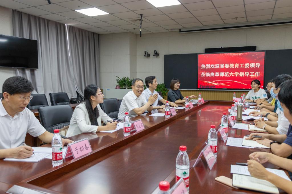 曲阜师大新闻中心讯(通讯员:尹哲睿 摄影:马林梓 尹哲睿)9月9日上午,省委教育工委副书记、教育厅党组副书记、副厅长冯继康,省委教育工委高校干部处处长袁广全,省委教育工委思想政治工作处副处长徐璐,省委教育工委学校组织处副处长范克岩一行到我校调研指导党建工作,学校党委书记戚万学,党委副书记扈庆学,党委常委、副校长卢国强,党委常委、组织部部长郭庆兵,党委常委、宣传部部长张隆海以及有关部门负责人陪同调研。