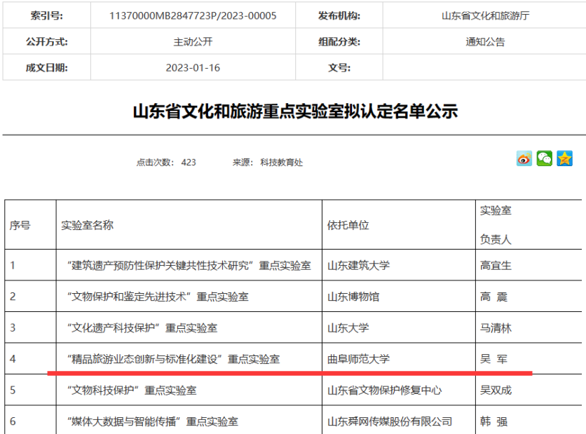 曲阜师大获批山东省文化和旅游重点实验室