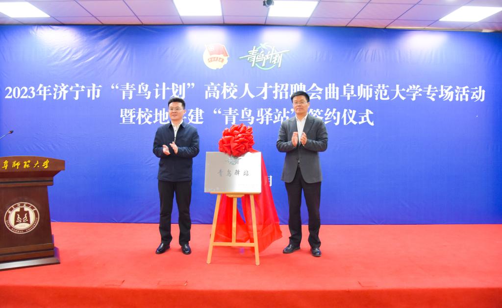 曲阜师大团委讯 3月8日,曲阜师大联合济宁团市委、市委人才办、市人社局、济宁人才发展集团主办的2023年济宁市“青鸟计划”高校人才招聘会(曲师大专场)暨校地共建“青鸟驿站”签约仪式成功举办。完美网页版党委副书记卢国强、济宁团市委书记田卫锋出席会议,共同为完美网页版—济宁“青鸟驿站”揭牌。