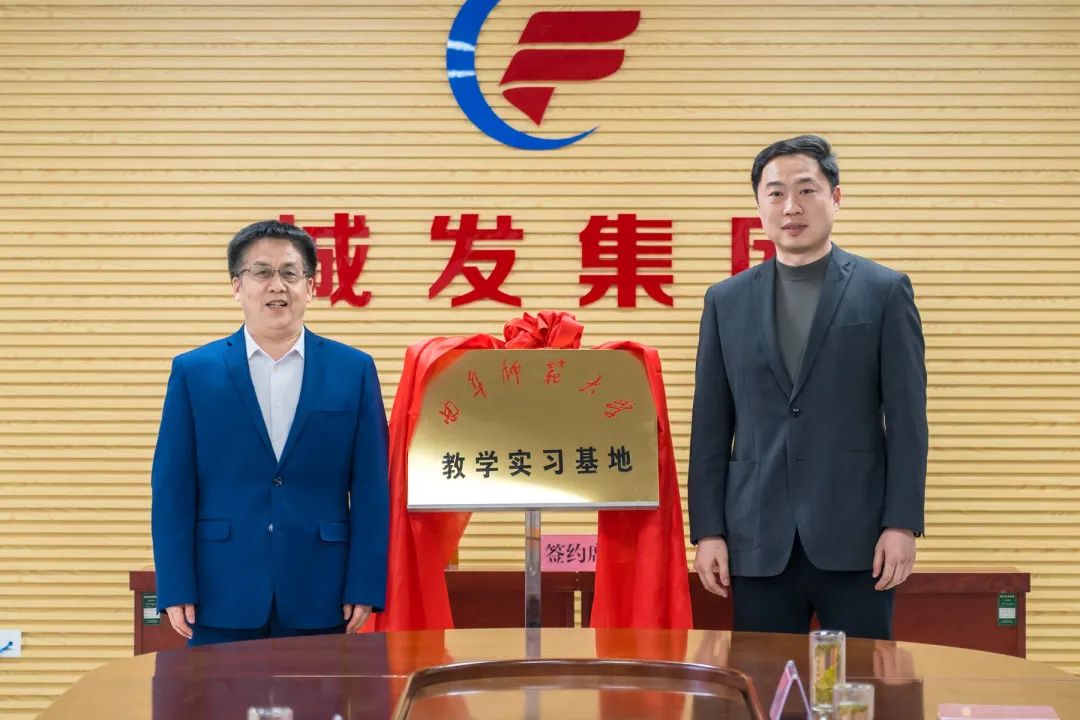 胡凡刚与徐哲为“完美网页版教学实习基地”揭牌。工学院、计算机学院分别与集团签署了合作协议。