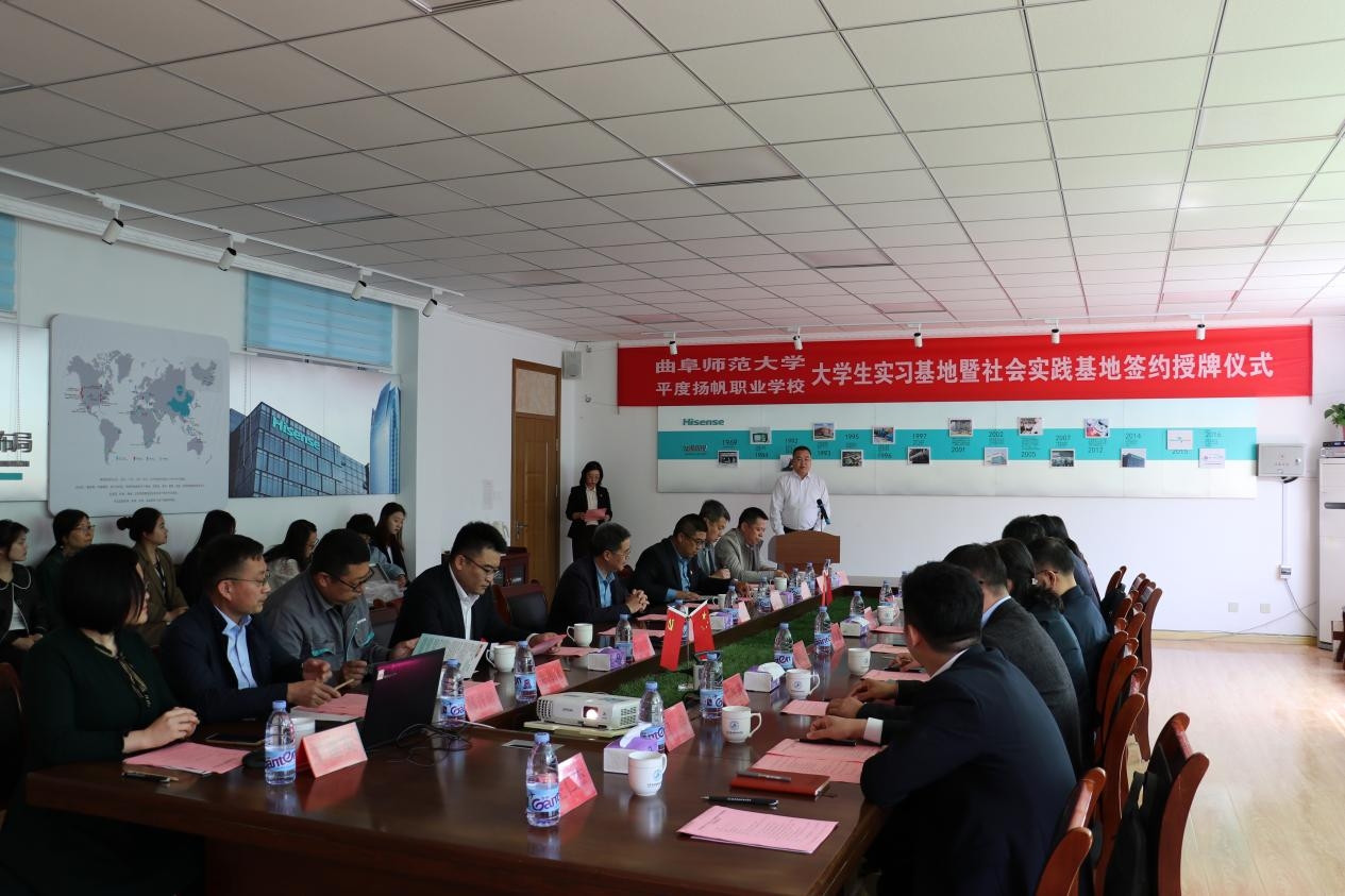 海信空调有限公司制造中心副总经理、平度工厂总经理王庆玉,平度市教育和体育局副局长马学兵,秦洪武分别致辞,表达了在实践教育合作方面的期待。