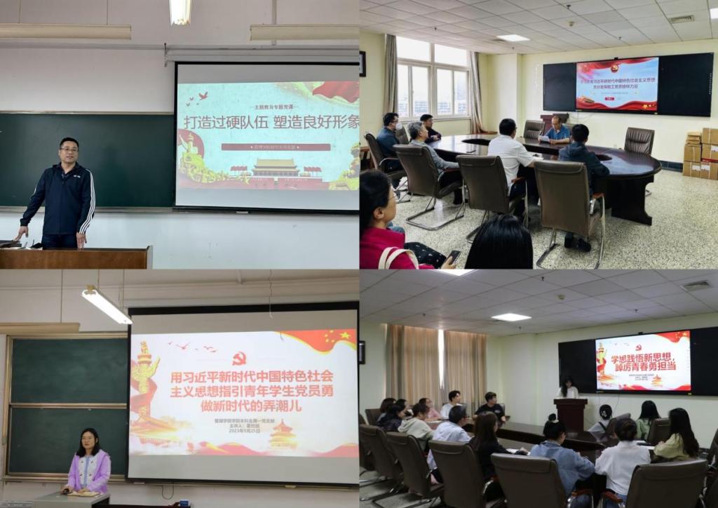主题教育启动以来,管理学院教工党支部、研究生党支部、本科生第一党支部、本科生第二党支部支部书记分别讲了题为《学习贯彻习近平新时代中国特色社会主义思想 充分发挥教工党员榜样力量》《打造过硬队伍 塑造良好形象》《用习近平新时代中国特色社会主义思想指引青年学生党员勇做新时代的弄潮儿》《学思践悟新思想 踔厉青春勇担当》的党课,通过支部专题党课,号召全体师生党员坚持不懈用习近平新时代中国特色社会主义思想凝心铸魂,将其转化为坚定理想、锤炼党性和指导实践的强大力量。