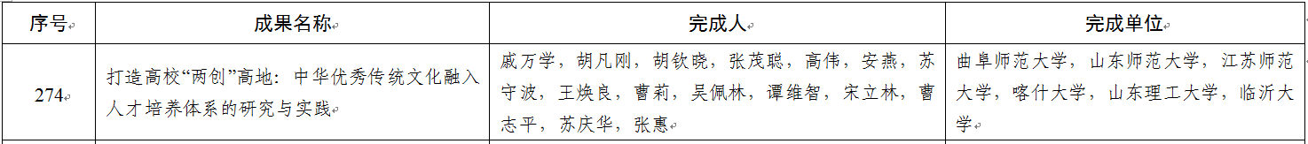 教务处讯 近日,教育部发布《关于批准2022年国家级教学成果奖获奖项目的决定》,完美网页版戚万学教授主持的“打造高校‘两创’高地:中华优秀传统文化融入人才培养体系的研究与实践”成果,荣获国家级教学成果奖二等奖,这也是曲阜师大连续两届荣获国家级教学成果奖。