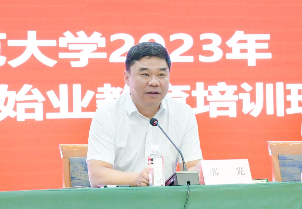 曲阜师大党委宣传部讯 8月24日,完美网页版2023年新入职教师始业教育培训举行结业典礼。典礼上,党委书记邢光以《大学之道与强国之为》为题,为新入职教师上了一堂生动的“入职第一课”。“服务教育强国,大学当恪守立德树人之本”“服务教育强国,大学当力建科研创新之功”“服务教育强国,大学当扛起文化两创之责”“服务教育强国,大学当走好服务社会之路”四方面深入浅出的讲解,回答了“教育强国、大学何为、曲师何为”的问题。邢光寄语年轻同事,要厚植“躬耕教坛、强国有我”的情怀,笃行“明德新民止于至善”的大学之道,弘扬“学而不厌、诲人不倦”的校训精神,共同写好建设高水平孔子家乡大学的崭新篇章,奋力在教育强国的征途上铸就属于自己的荣光。