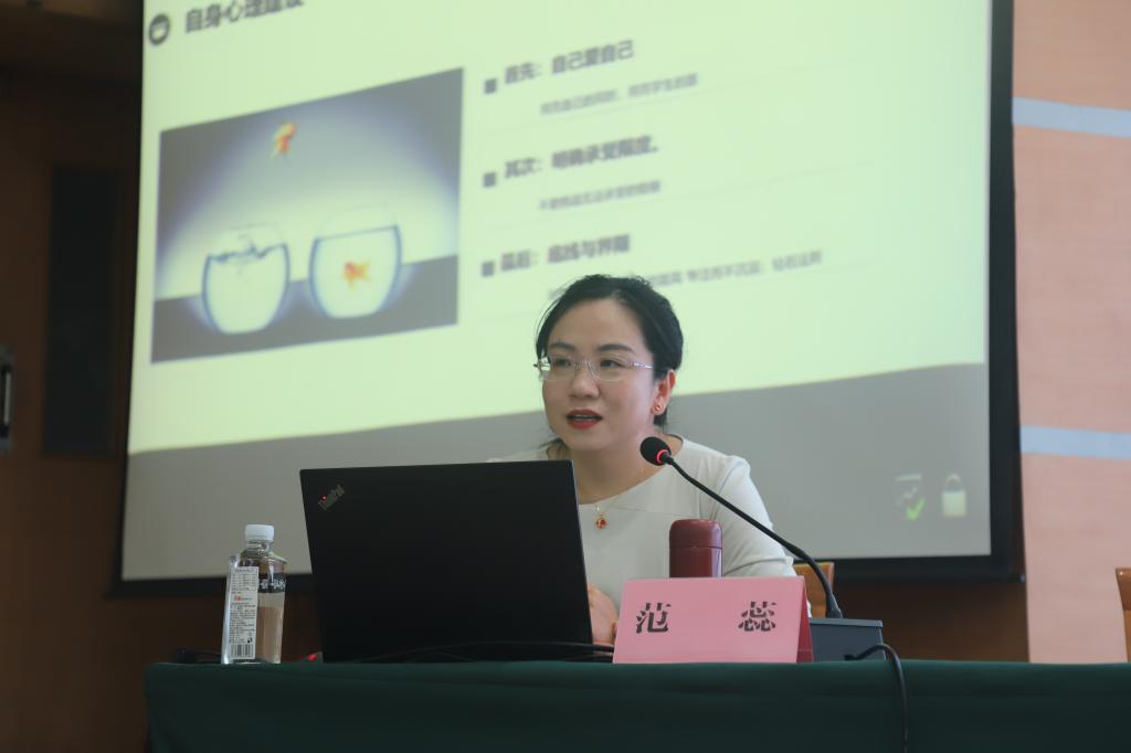 培训期间,山东大学党委学工部副部长、全国最美高校辅导员范蕊,做了《辅导员开展心理健康教育的探索与实践》报告,讲解了辅导员开展心理健康教育的必要性、工作原则、主要内容和开展危机干预的方法步骤。