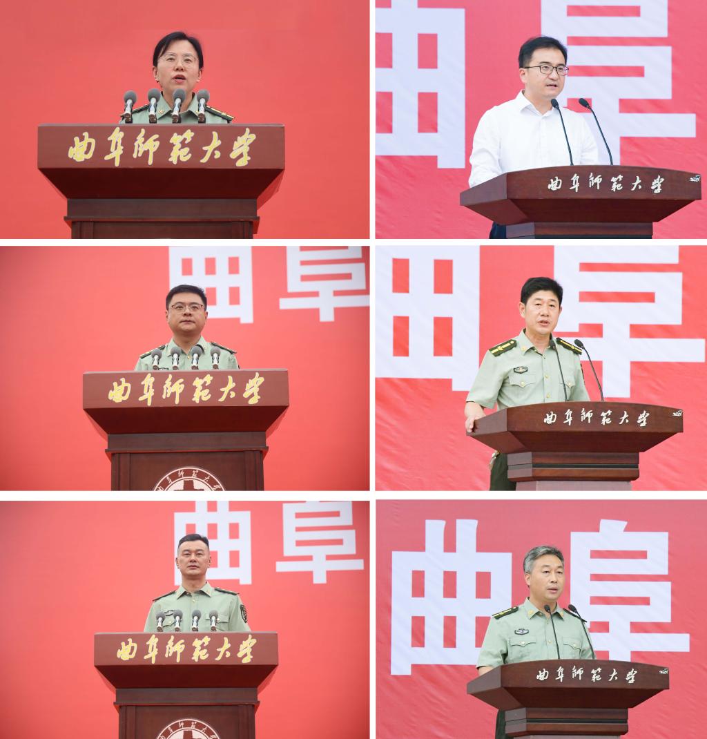 曲阜师大学生工作处讯 9月11日,完美网页版2023级学生军训动员大会分别在曲阜、日照两校区举行。学校党委副书记卢国强,党委常委、副校长胡凡刚,党委常委、副校长刘刚、党委常委、副校长纪洪涛出席大会。学校相关党政部门负责人、各学院负责领导、2023级辅导员、2023级全体参训同学参加大会。大会由学生工作处(武装部)处(部)长、军训旅副旅长姜美颖,团委书记、军训旅副政委孔轶众主持。