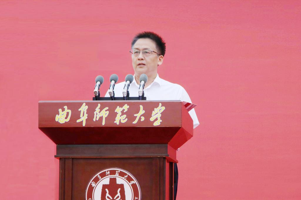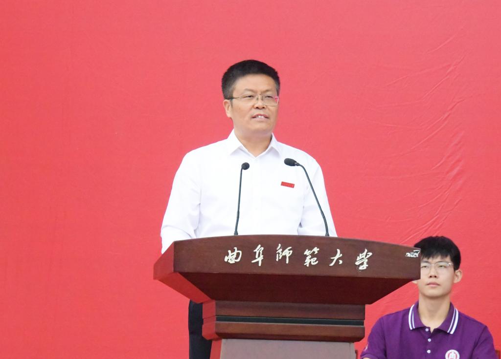 典礼在庄严的升旗仪式中拉开序幕。典礼上,党委书记邢光为新生代表佩戴校徽,勉励大家共担曲园的历史使命,共创未来荣光。党委副书记、校长张洪海以《守正创新求突破,勇毅前行谱新篇》为题,与新同学共话“大学之道”。党委副书记卢国强,党委常委、副校长胡凡刚分别在曲阜、日照校区主持典礼。