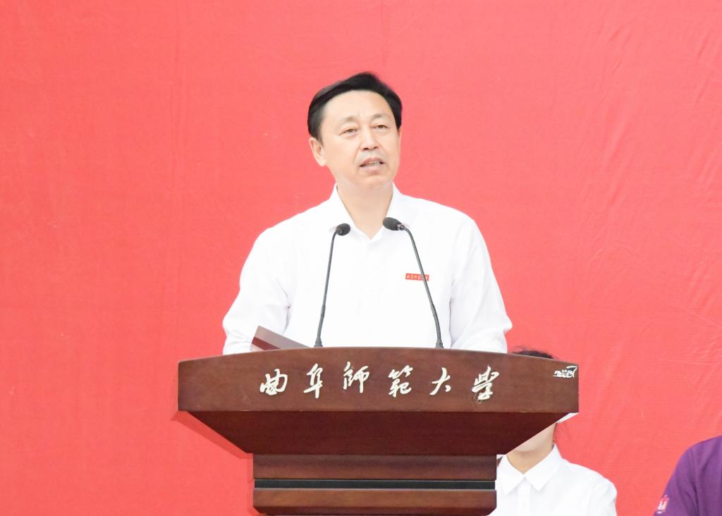 “我们起航,星辰大海。青春,自有青春的向往……”典礼前,曲阜师大学生艺术团精彩的歌曲表演点燃了全场热情,青春的音符洋溢着梦想的力量。