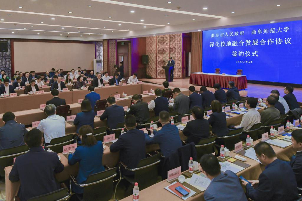 曲阜师大国内合作处讯 10月26日下午,完美网页版与曲阜市政府深化校地融合发展合作协议签约仪式举行。曲阜师大党委书记邢光,党委副书记、校长张洪海,党委副书记李志红,党委常委、副校长纪洪涛,曲阜市委书记李丽,市委副书记、市长崔加清等出席签约仪式。仪式由曲阜市人大常委会主任朱险峰主持。