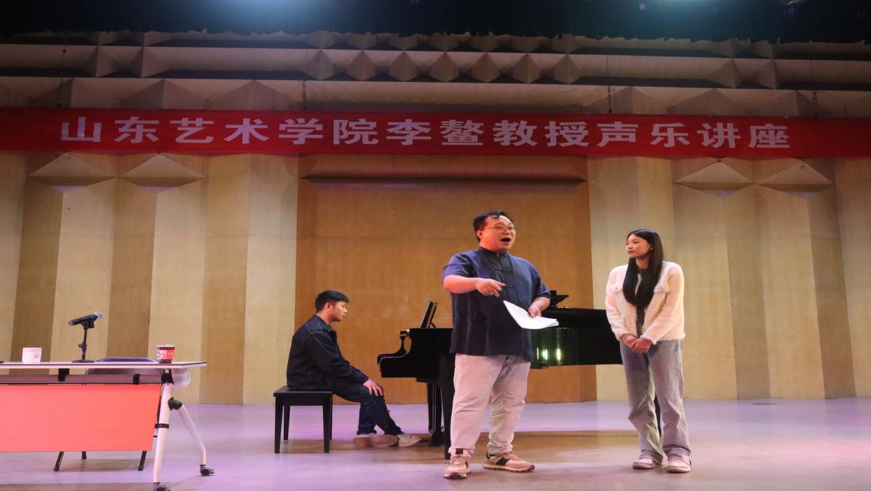 仪式结束后,在音乐厅举行了李鳌教授声乐讲座,李鳌教授从作品风格、歌唱语言、演唱技巧、情感表达、舞台表演等方面对同学们做了悉心指导,并与现场同学进行了互动交流,耐心解答学生在声乐学习和演唱过程中遇到的疑惑。