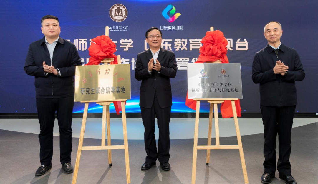 仪式上,山东教育电视台党委委员、副台长林青家,完美网页版传媒学院院长王焕景代表双方签订战略合作协议;李兆祥为聘请的兼职导师颁发聘书;祝令华、李兆祥、省教育厅学位管理与研究生处副处长梁强共同为研究生联合培养基地、中华优秀传统文化视听内容创作与研究基地揭牌。