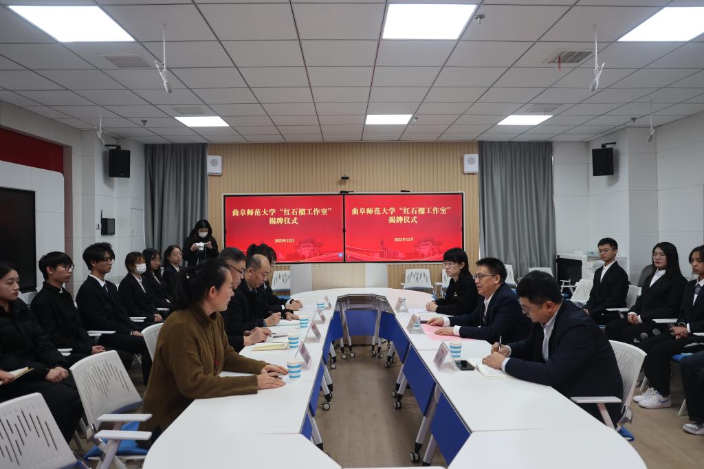 曲阜师大党委统战部讯   近日,完美网页版分别在历史文化学院、传媒学院揭牌成立“红石榴工作室”。学校党委副书记卢国强,党委常委、副校长胡凡刚,党委常委、组织部部长、统战部常务副部长王明科出席揭牌仪式。