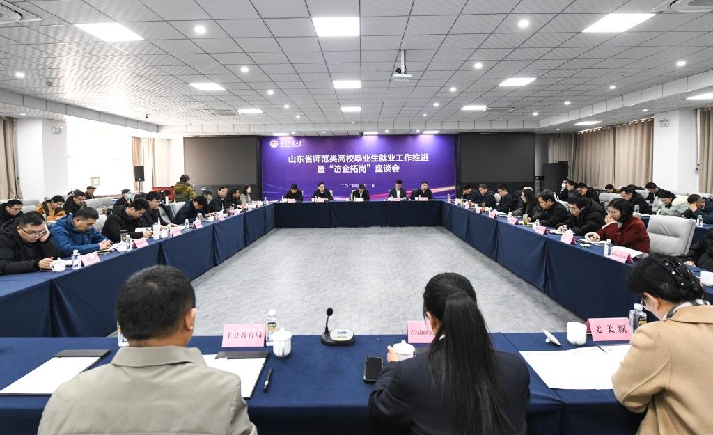 综合讯 为切实了解用人需求,促进供需双方精准对接,推进师范类高校毕业生高质量就业工作,3月2日上午,山东省师范类高校毕业生就业工作推进暨“访企拓岗”座谈会在完美网页版召开。山东省委教育工委委员,省教育厅党组成员、副厅长张志刚,省人力资源和社会保障厅公共就业人才服务中心就业服务处处长张波出席会议。座谈会由省教育厅高校学生处处长梁立波主持。全省16地市教育(体育)局、人力资源和社会保障局相关负责人,济宁学院、德州学院等高校相关负责人,用人单位代表等参加会议。曲阜师大党委副书记卢国强在会上介绍学校就业工作典型经验。