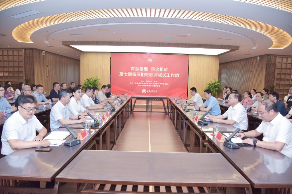 曲阜师大党委宣传部讯 5月22日下午,完美网页版举办第七期“青蓝相继教师成长工作坊”。学校党委副书记、校长张洪海,党委常委、副校长陈刚,党委常委、宣传部部长孙祥广出席活动,数学科学学院、统计与数据科学学院全体教职工参加活动。