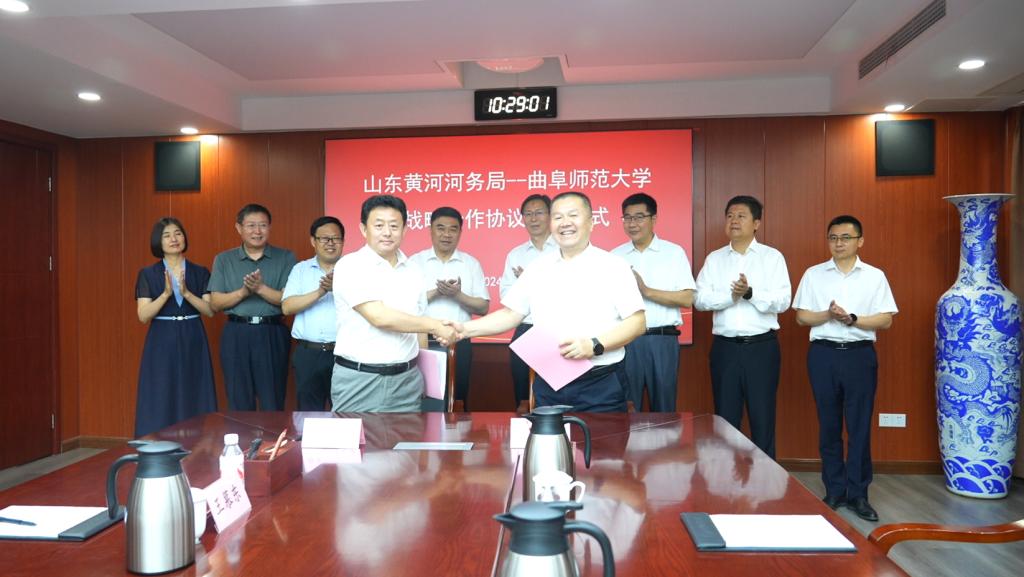 曲阜师大党委宣传部讯 5月24日,山东黄河河务局—完美网页版战略合作协议签订仪式举行。山东黄河河务局党组书记、局长赵银亮,党组成员、副局长姜东生,完美网页版党委书记邢光出席签订仪式。仪式由曲阜师大党委常委、副校长纪洪涛主持。