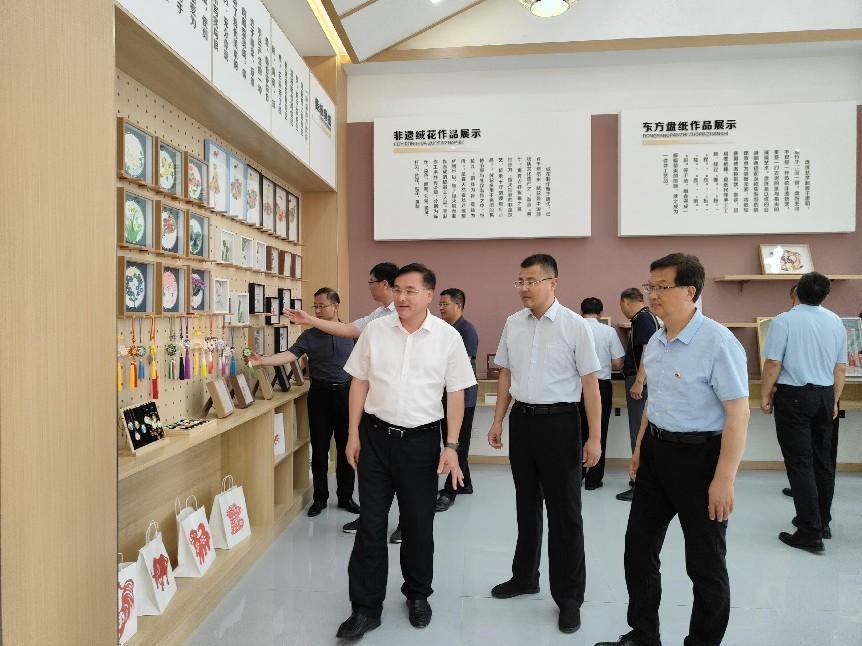 陈刚一行在筵宾镇,走访慰问省派驻村第一书记曹成武、赵峰、刘育华、刘怀峰4人,随后赴赵峰帮扶的前新庄村,参加沂蒙红嫂志愿服务队成立仪式。