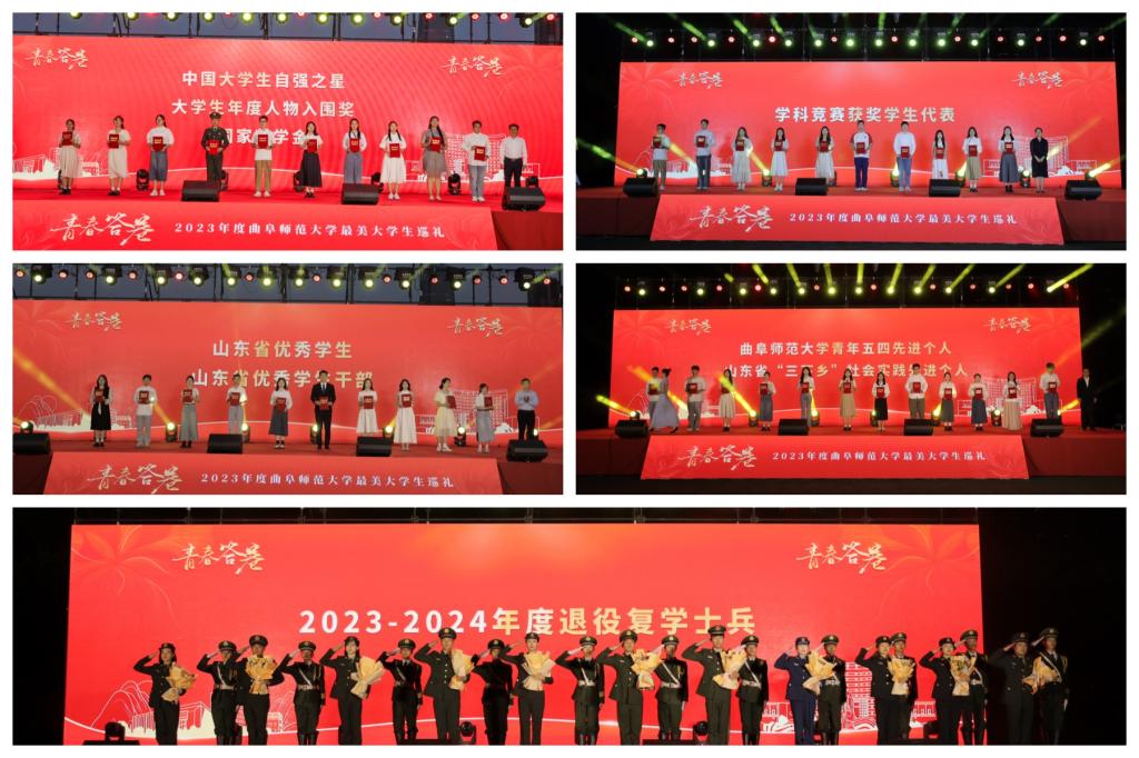 巡礼活动中,全体人员共同观看了2023年曲园学子在学业发展、创新创业、志愿服务、社会实践、技能锻炼等方面奖项获奖代表的宣传片,出席活动的领导老师为中国大学生自强之星、第十八届大学生年度人物入围奖、国家奖学金、山东省优秀学生、山东省优秀学生干部、山东省优秀毕业生、高质量就业学生代表、完美网页版青年五四先进个人、山东省三下乡社会实践先进个人代表颁奖,学生代表为退役复学大学生士兵代表献花。