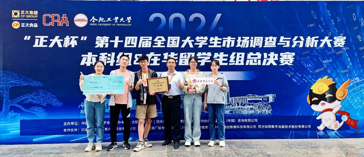 统计与数据科学学院 6月1日至2日,第十四届全国大学生市场调查与分析大赛本科组&在华留学生组总决赛在合肥工业大学举办。统计与数据科学学院2021级本科生陈添硕、马亚楠、李文静、张鑫荣和袁艺琳在陈志成老师的指导下,以全国第五名的成绩荣获一等奖并晋级海峡两岸大学生市调大赛。这不仅是曲阜师大在该项赛事中取得的最好成绩,也是山东省高校首次晋级海峡两岸大学生市调大赛,实现了山东赛区的历史性突破。