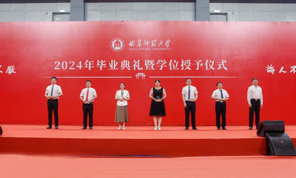 邢光、张洪海为学校首届“我喜爱的曲园好老师”颁发荣誉奖杯,共有数学科学学院辅导员韦宁、文学院辅导员肖黎、网络空间安全学院辅导员武玉龙、马克思主义学院教师汤锐、工学院教师李磊、传媒学院教师刘波、管理学院教师韩丽、计算机学院教师马春梅、体育科学学院教师伊超、法学院教师袁辉等十名教师获得表彰。“我喜爱的曲园好老师”是经2024届全体毕业生推荐并由全体学生投票评选,见证着尊师重教、师生情深。
