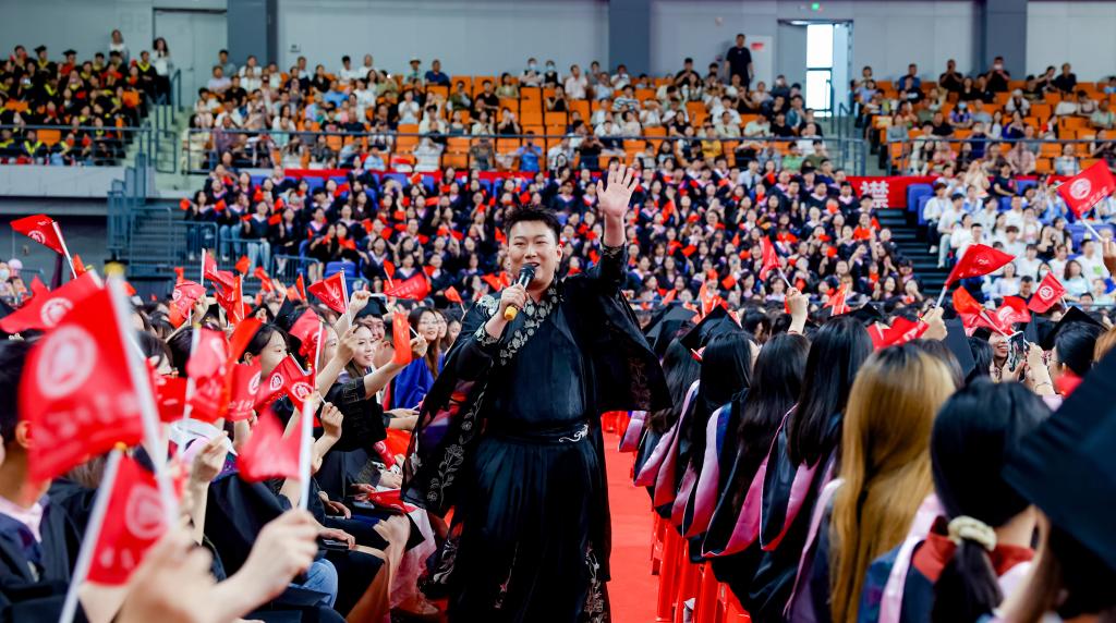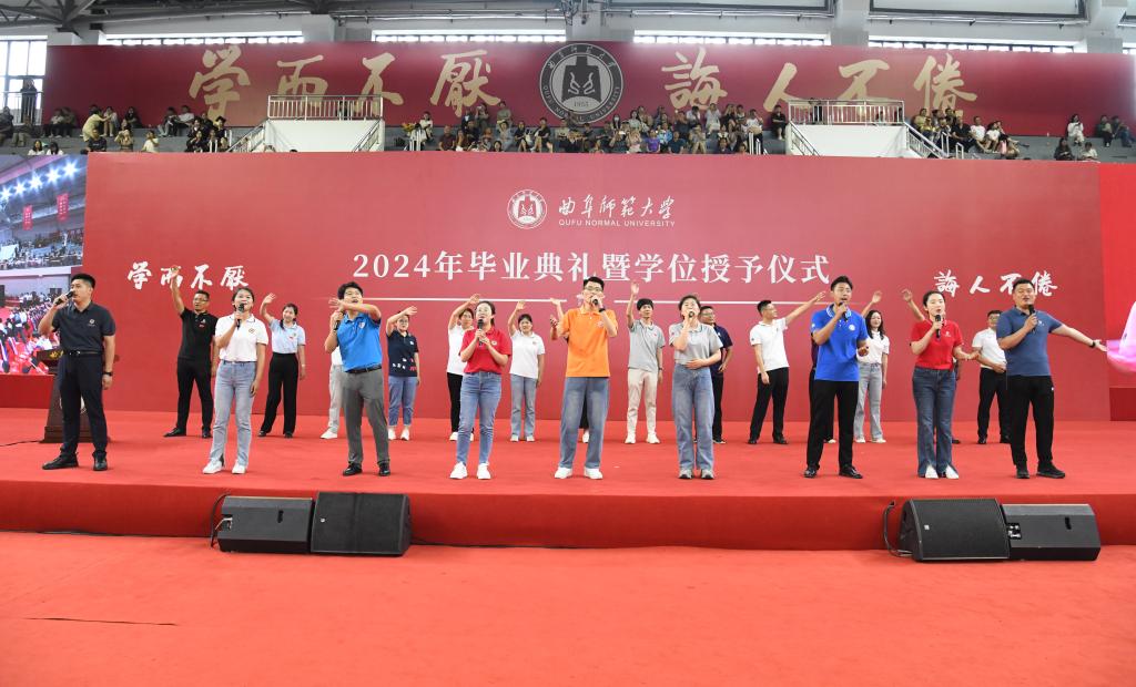 “四年前,你们带着对未来的美好憧憬来到曲园,你们在这里积累下人生最宝贵的财富,从此身上烙上曲园的印记,人生很长,四年很短,儒风海韵,玉汝于成。”经济学院党委副书记毕文波深情寄语毕业学子们,“无论走到哪里,都要记住,曲园是你们永远的家!”