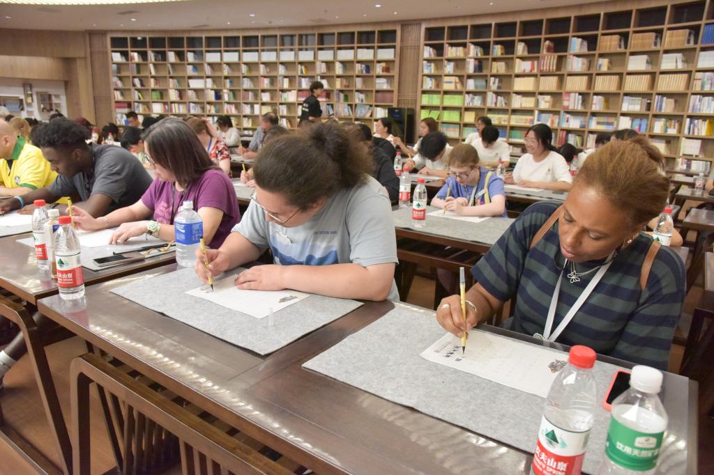 外国青年在汉服展示与体验中赞叹中华传统服饰文化之美,在《论语》书法摹写中品读“有教无类,因材施教”的育人智慧,在“孔子行教像”木雕版印刷活动中领略中国四大发明之一印刷术的魅力,在投壶游戏的体验中感受六艺射礼的文化内涵与乐趣……在中外青少年交流基地志愿者的陪同下,外国青年们踊跃参与和体验,拿着自己的书法作品、拓印作品纷纷身着汉服打卡拍照。“今天的展示太精彩了!”“汉服超级漂亮,我可以要一个链接吗?”“你们的尊师茶很好喝!”“谢谢你们让我感受到了中国传统文化的独特魅力”……美方青年们纷纷赞叹道。交流活动最后,中外青年共植友谊树,一起响应“美美与共,天下大同”的文化倡议。
