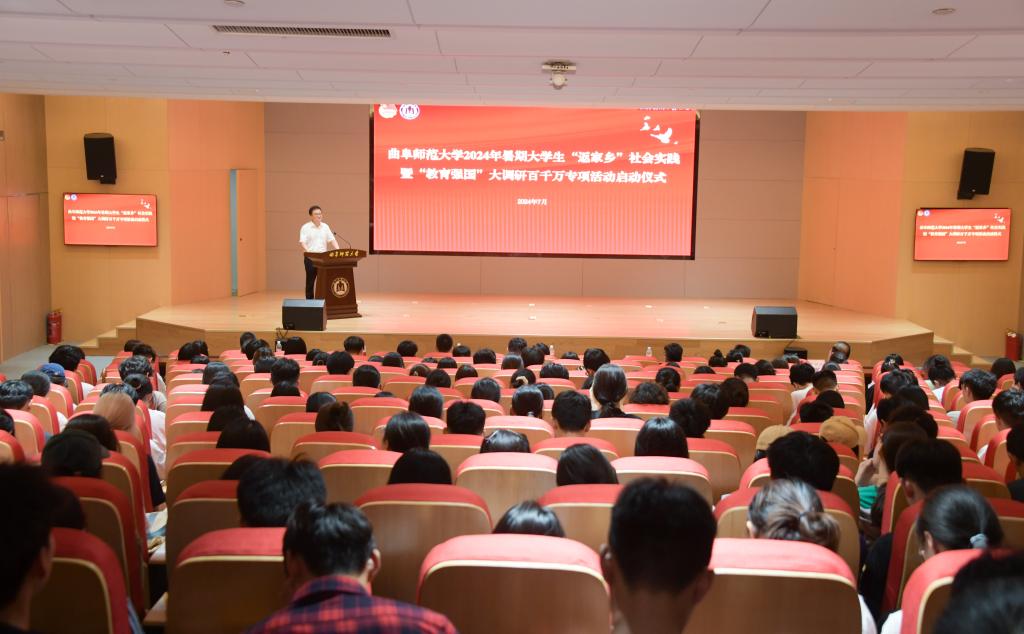 曲阜师大团委讯 为贯彻落实党的二十大精神和习近平总书记关于青年工作和建设教育强国的重要讲话精神,进一步鼓励青年学生走进基层一线开展实地调研,进行实践锻炼,曲阜师大于7月6日举行2024年暑期大学生“返家乡”社会实践暨“教育强国”大调研百千万专项活动出征仪式。学校党委副书记李志红,党委常委、宣传部部长孙祥广出席活动。