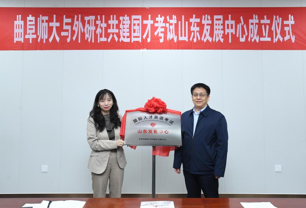 仪式上,胡凡刚与冯涛共同为“国际人才英语考试山东发展中心”揭牌,曲阜师大教务处处长李傅山与外研社高等营销中心华东大区总经理李洪旺为“完美网页版国际人才培养基地”揭牌。两大平台的成立,将为山东省高校国际化人才培养提供重要支撑。