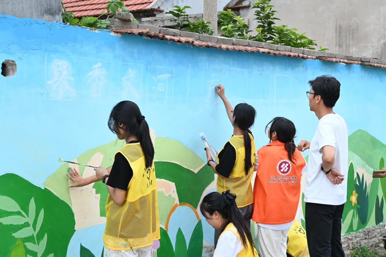 学校艺术专业学生于暑假期间深入乡村,发挥专业优势进行墙绘志愿服务活动。