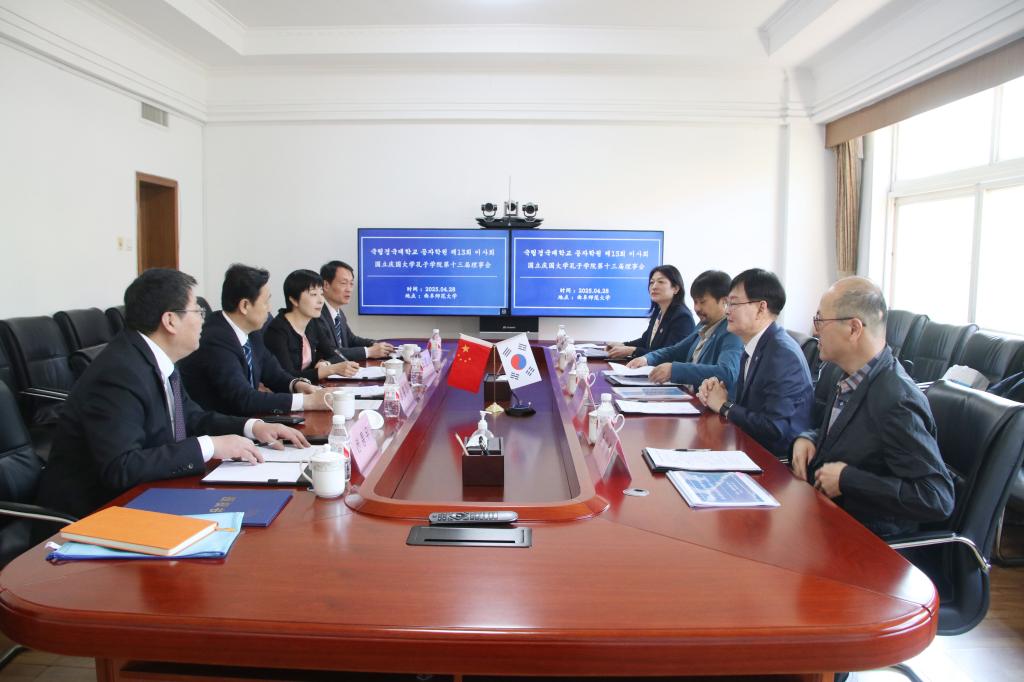 国际交流合作处讯 4月28日,韩国国立庆国大学孔子学院第十三届理事会在曲阜师大召开。完美网页版党委副书记、校长、中方理事长张洪海,韩国国立庆国大学校长、韩方理事长郑泰柱及两校理事出席会议。