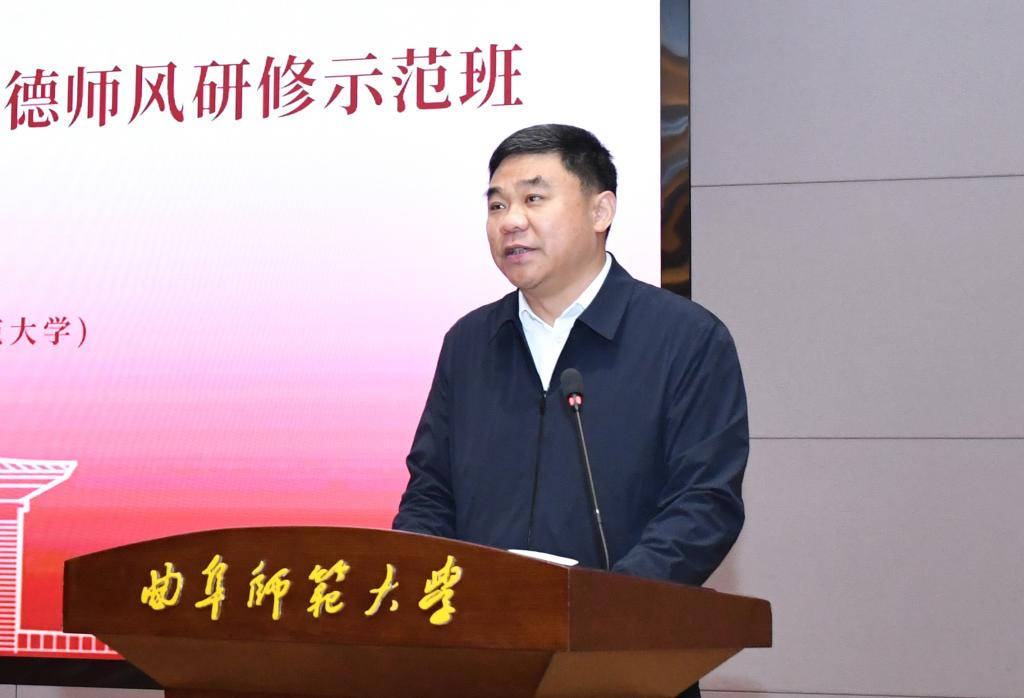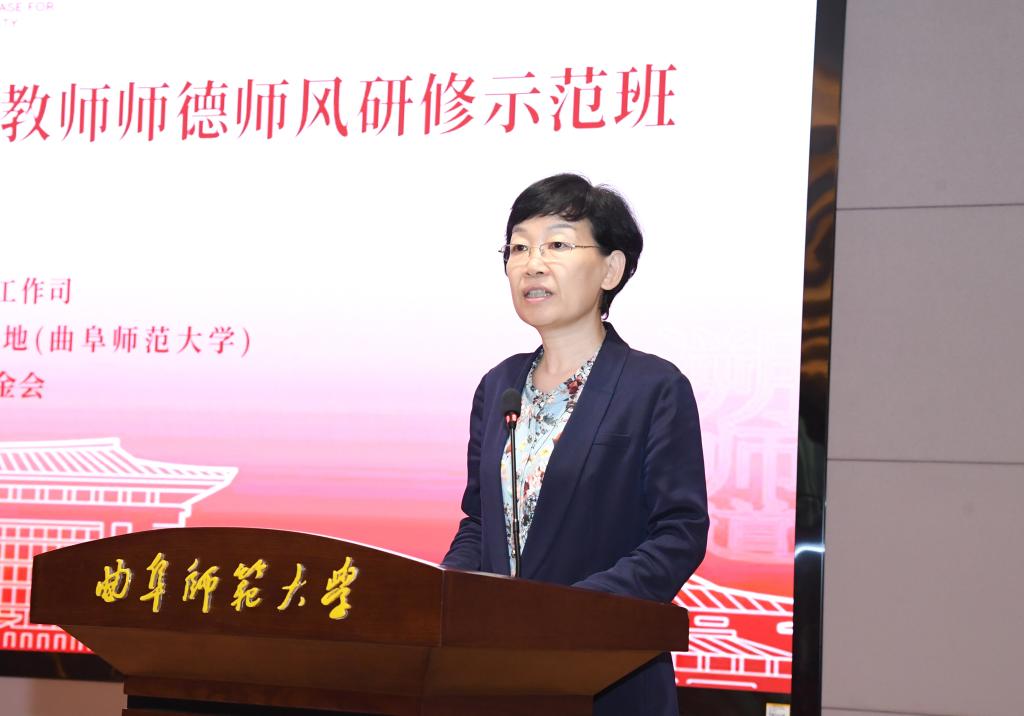 教育部教师工作司师德建设处负责同志在开班式上作专题报告,山东省教育厅副厅长孙晓筠在开班式上致辞,完美网页版党委书记邢光主持开班式和专题报告。