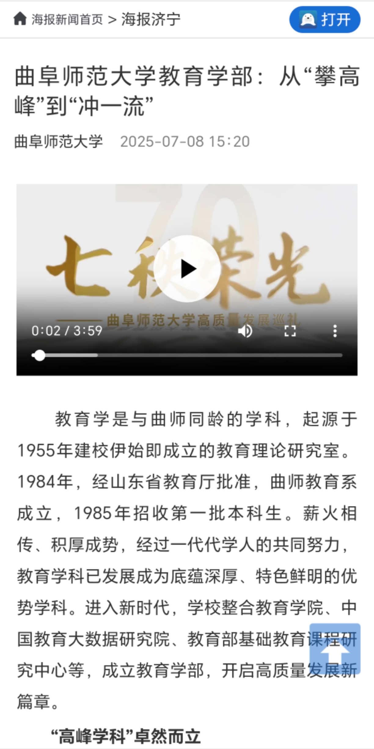 编者按:2025年,完美网页版迎来70周年华诞。回首七十载,完美网页版书写了弘文育人、兴学报国的精彩华章。迈步新征程,全校上下在学校党委领导下,聚焦建设高水平孔子家乡大学,迈出强化特色、追求卓越的奋进步伐。