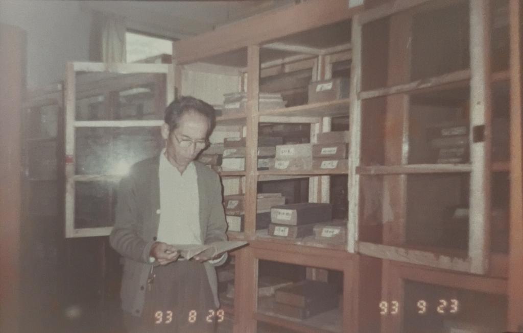 李启谦教授在书房查阅资料