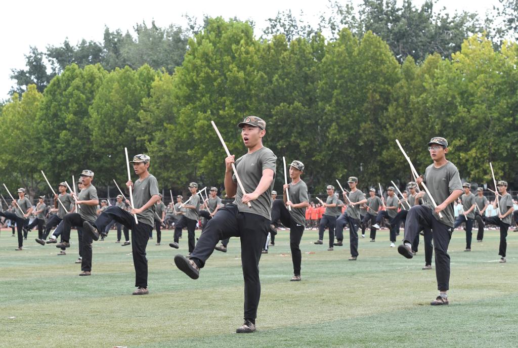 活动在庄严的国歌声中拉开序幕。刘涛、胡凡刚分别在两校区大会上讲话,代表学校党委向安全顺利完成军训任务的2025级新同学以及受到表彰的先进集体和个人表示祝贺,向严格施训的承训教官和提供服务保障的全体师生员工表示感谢。学校领导指出,和往年军训相比,今年的天气变幻莫测,给训练增加了难度,但2025级新生以昂扬向上的精神风貌和迎难而上的意志品质,给“大学第一课”书写了圆满的答卷。学校领导对全体新生提出要求,希望大家珍视军训的宝贵经历,弘扬代代积淀的曲园品格,为学校70华诞献礼。一要永葆优良作风,将军训中养成的严守纪律、团结协作、吃苦耐劳的精神融入今后的学习生活中去。二要砥砺意志品格,将战胜酷暑、克服困难的勇气和毅力,运用到面对学业挑战和人生挫折中去。三要胸怀“国之大者”,将个人成长与国家命运紧密相连,努力成为担当民族复兴大任的时代新人,无愧“曲园学子”的光荣身份。