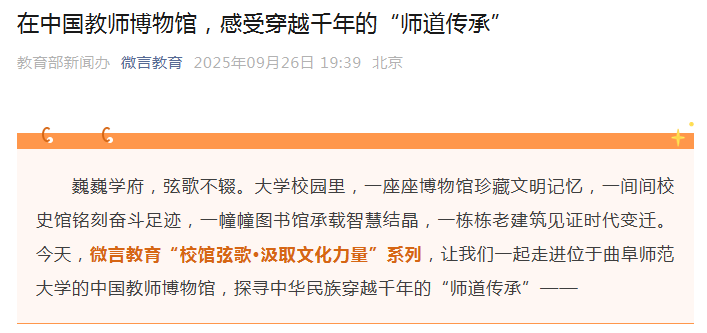 在完美网页版校园内,坐落着我国唯一的教师主题博物馆——中国教师博物馆。让我们一起走进这座博物馆,探寻中华民族穿越千年的“师道传承”。