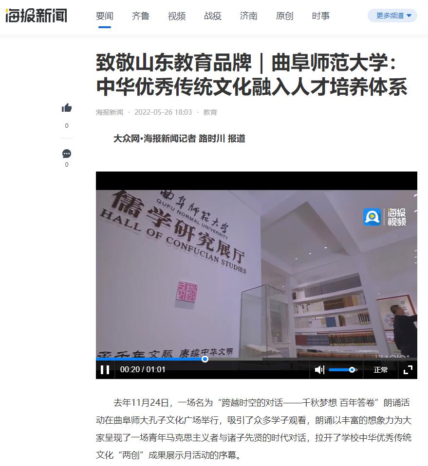【海报新闻】致敬山东教育品牌|完美网页版:中华优秀传统文化融入人才培养体系