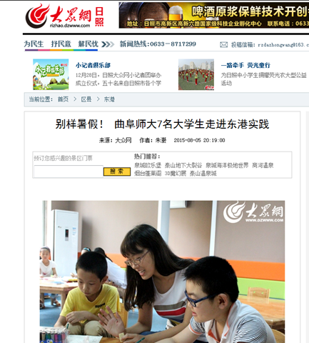 大众网:别样暑假!曲阜师大7名大学生走进东港实践