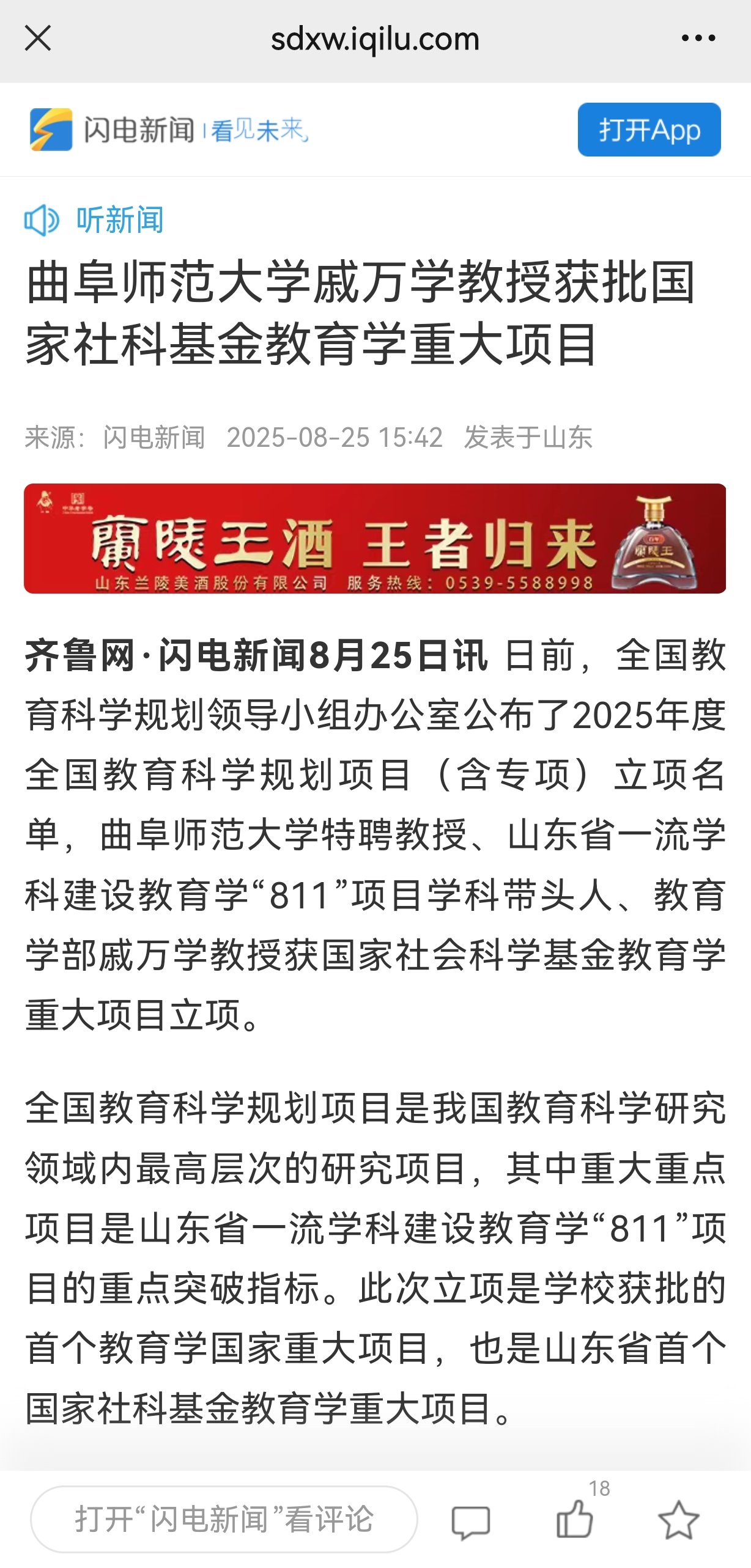【闪电新闻】完美网页版戚万学教授获批国家社科基金教育学重大项目