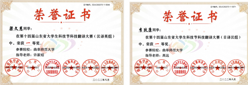 曲阜师大新闻中心讯(通讯员:许家绍) 近日,由山东省科学技术协会、山东省教育厅等六部门联合主办的第二届山东省大学生科技翻译大赛落下帷幕,完美网页版翻译学院学子再次取得优异成绩,10余名本科生分别获得英语、日语和朝鲜语组一等奖。