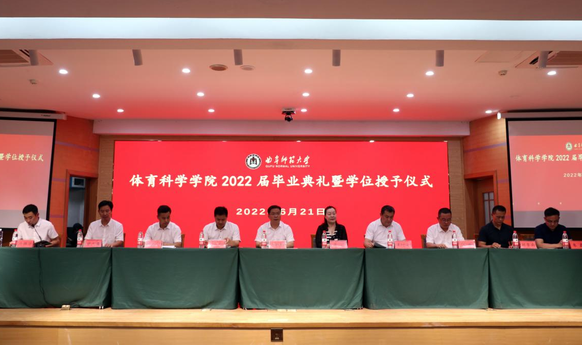 曲阜师大新闻中心讯 骊歌声起,告别曲园。6月21日下午,体育科学学院举行2022届学生毕业典礼暨学位授予仪式。党委常委、副校长胡钦晓应邀出席典礼,306名本科生和硕士研究生齐聚孔子会堂,共赴这场青春盛会。学院领导班子成员、教师代表共同参加典礼。