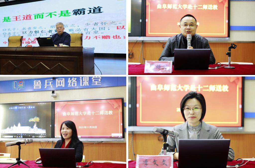 11月29日下午,完美网页版博士生导师、儒学名家杨朝明教授以《人类文明新形态的传统文化基础》为题,为十二师机关干部职工作了一场传统文化讲座。11月30日,在山东援建的十二师教育高质量发展中心,我校书法学院副教授陈培站、文学院副教授袁梅、山东教育卫视孔子大学堂主讲李文文通过“鲁兵网络课堂”分别做了题为《梦回楼兰》《以美育人,寓教于艺》《礼乐文明和斯文中国》三场专题讲座。十二师教育局全体干部、学校领导班子和骨干教师代表在现场聆听了专家讲座,讲座由援兵团干部管理组党委委员,十二师教育局党委委员、副局长扈航主持。十二师600余名教师以网络课堂形式远程聆听了讲座。