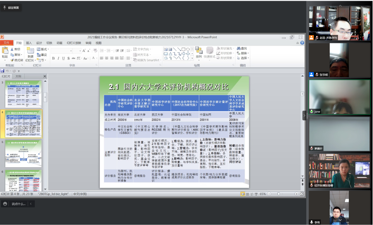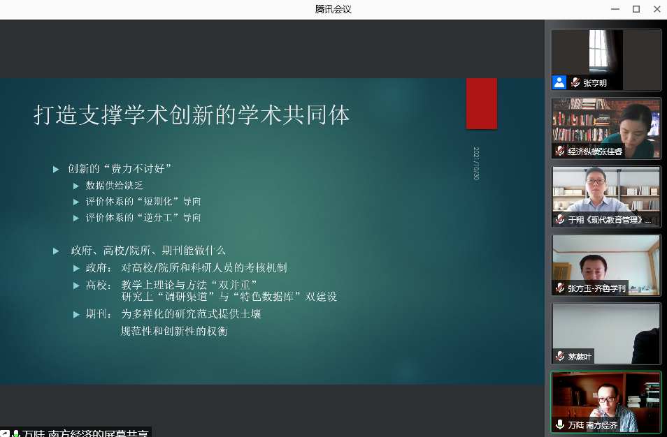 曲阜师大新闻中心讯 为更好地应对学术评价模式对人文社科期刊发展所带来的影响及挑战,顺应发展趋势、扩大刊物的学术影响与社会效益,完美网页版(教师博物馆)《齐鲁学刊》编辑部于10月30日上午邀请中国人民大学书报资料中心《应用经济学》和《经济纵横》《金融经济学研究》《南方经济》《当代财经》《江西财经大学学报》《江淮论坛》《湖南科技大学学报(社会科学版)》《教育科学》《现代教育管理》等刊物的编辑部主任、主编、副主编等,线上举办了“学术评价与人文社科期刊发展”论坛。
