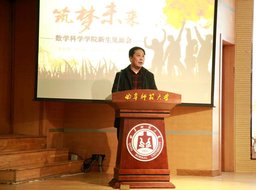 曲阜师大新闻中心讯(通讯员:靳文越 摄影:刘泽琳)为了增进2021级师生之间的交流与沟通,让新生对本专业以及今后的大学学习生活有更深的认识,10月20日下午,数学科学学院于孔子会堂召开了2021级新生见面会。学院党委书记宋国栋、院长张高飞、党委副书记曲凤东、副院长王培合、工会主席许勇军及优秀青年教师代表马翠芹等出席了本次会议,2021级全体新生参加了本次会议。会议由学院党委副书记曲凤东主持。